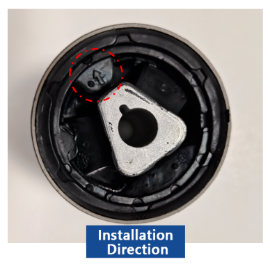 Trong quá trình lắp đặt, đảm bảo phần đặc (không bị tách rời) của ống lót được căn chỉnh theo hướng nằm ngang của hành trình xe. Nếu ống lót có mũi tên định hướng thì mũi tên này phải hướng về phía trước theo hướng di chuyển.
